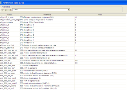 Figura 1 – Parâmetros Sped (EFD).