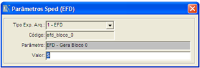 No campo “Tipo Exp. Arq.”, informar o código 1, onde o sistema filtra as configurações do EFD.