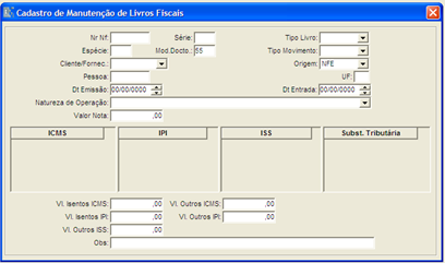 Menu: Contabilidade > Módulo Fiscal > Manutenção de Livros Fiscais.