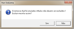 O sistema informará que já houve a geração do arquivo remessa e provavelmente o arquivo foi encaminhado pelo gerenciador financeiro do banco. O usuário deverá confirmar se deseja mesmo assim realizar a exclusão dos mesmos.