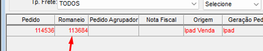 Obs.: Caso não saiba o número do romaneio, pode ser consultado no menu: vendas>pedidos>integrados