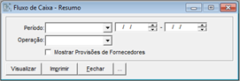 Menu: Financeiro > Fluxo Caixa > Resumido.