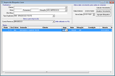 Menu: Faturamento > Impressões > Impressão Bloquetos Laser.