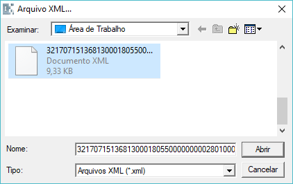 Basta localizar o arquivo XML através da tela apresentada abaixo.