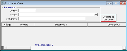 Para a visualização do contrato, selecione o registro lançado e clique no botão “Contrato de Comodato”.