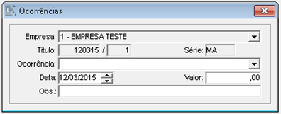 Ocorrência: informar a ocorrência, cadastrada através do menu: Financeiro > Ocorrência Financeira;
