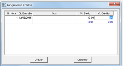 Figura 3 – Lançamento de crédito.