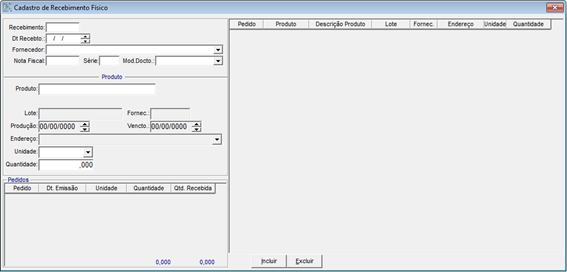 Menu: Materiais > Recebimento > Recebimento Físico.