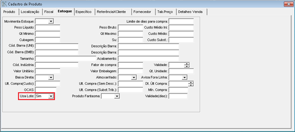 No cadastro de produto, o item deverá estar parametrizado para utilização de lote.