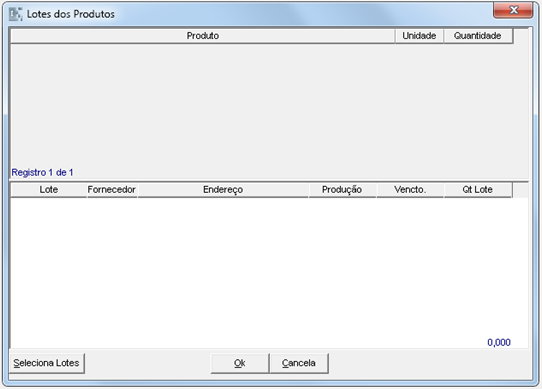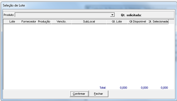 Na tela de seleção, informar a quantidade a ser utilizada por lote e confirmar operação.