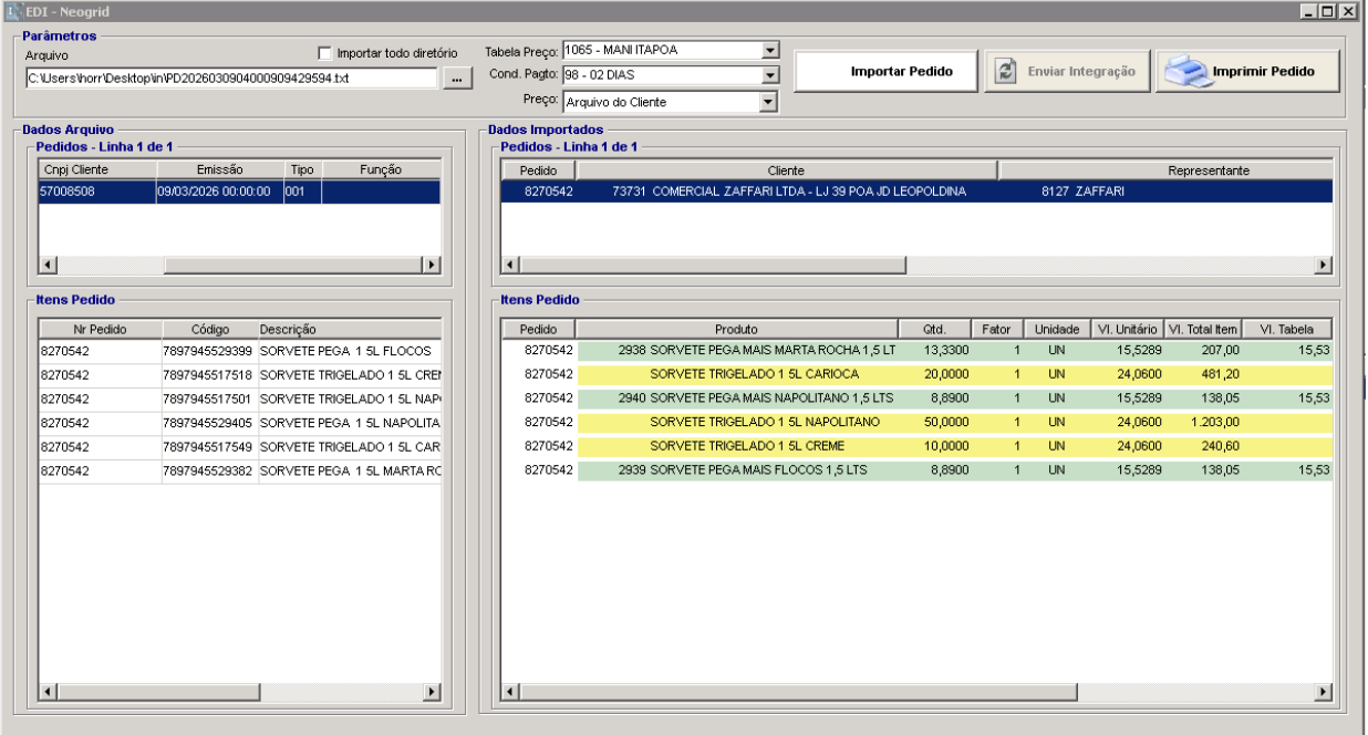 Utilizado para importar pedidos a partir do diretório da NeoGrid configurado para o cliente.