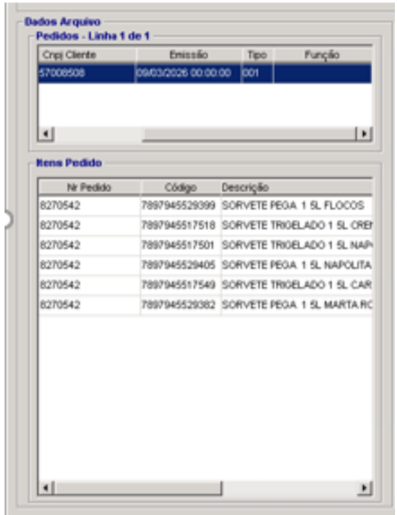 Área de dados do arquivo (pedidos e itens do pedido).